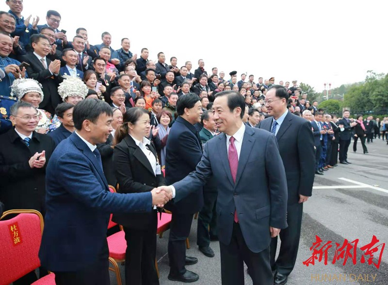 (11月26日上午,2020年湖南省劳动模范和先进工作者表彰大会在长沙举行。会前,省委书记许达哲,省委副书记、省政府党组书记毛伟明会见了省劳动模范和先进工作者并合影。)