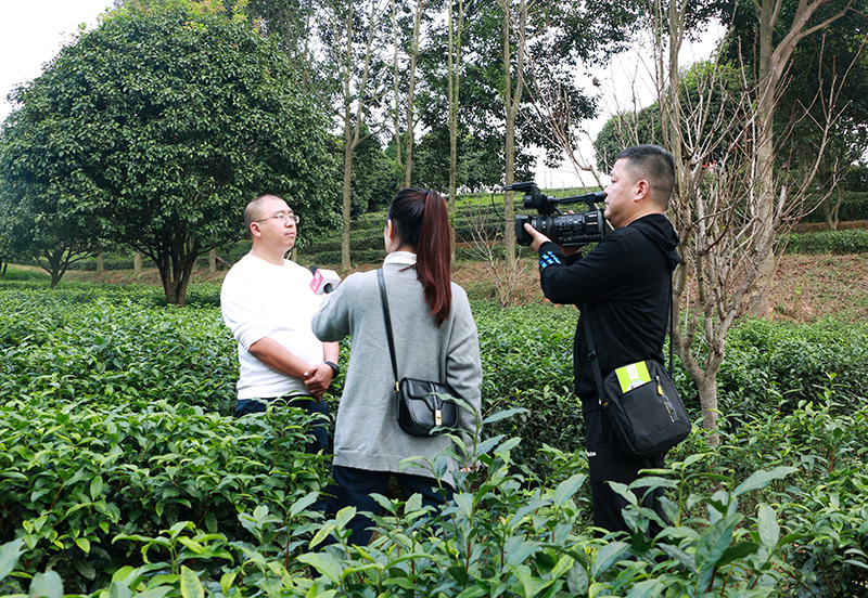 “大道康庄——人民网全媒体调研行”采访组在长沙县金井镇茶园采访。人民网何萌摄