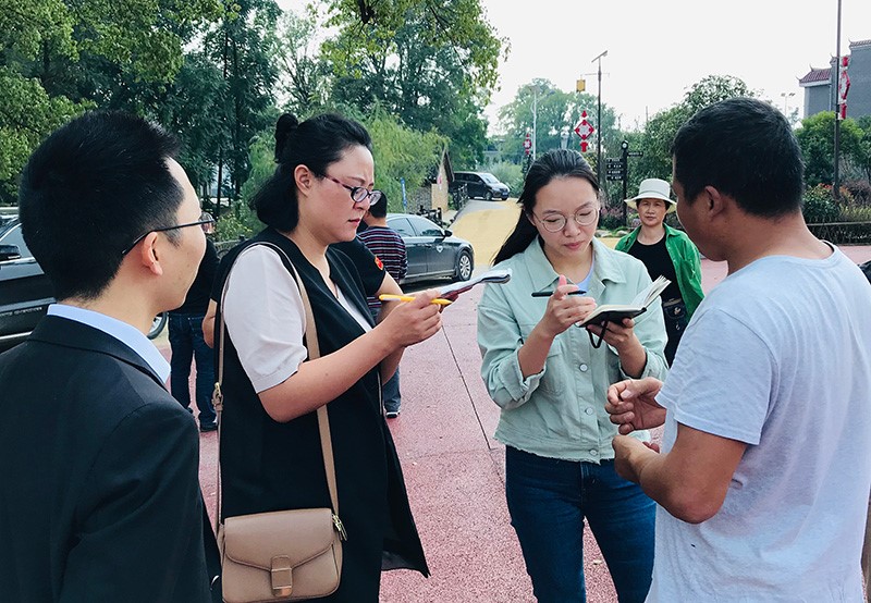 “大道康庄——人民网全媒体调研行”采访组在常宁市西岭镇采访。人民网张桂贵摄