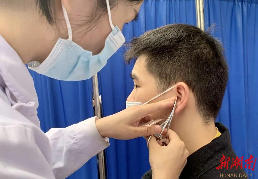 10月初,长沙市开福区63岁的吴奶奶在家干活时不小心闪到了腰,疼痛难耐而导致行动受限,随后来湖南中医药大学第二附属医院就诊。医生在进一步问诊检查后,在吴奶奶耳朵上取腰穴、肾穴、肝穴、神门穴进行耳穴压豆疗法,1次按压后,疼痛明显减轻。经一个月的治疗后,吴奶奶的腰痛已完全痊愈,行动如初。