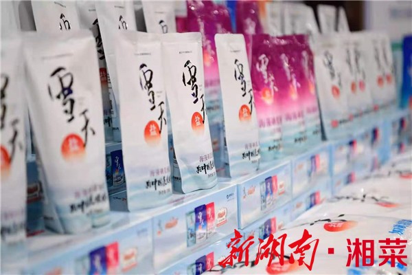 红煨洞庭水鱼、剁椒蒸鱼头、砂煲野生芦笋、香蒜炒腊牛肉、手工蛋饺、全家福、臭豆腐……“湘融大湾”美食品鉴会上,由大湾区十数家湘菜代表企业共同研发完成的数十桌地道湖湘山水味,全部采用海藻碘雪天盐制作。纯度高、用量省、杂质少、溶解快、咸味正,纯度99.6%的雪天盐主打“为中国菜提味”的理念,贯穿整个烹制过程。