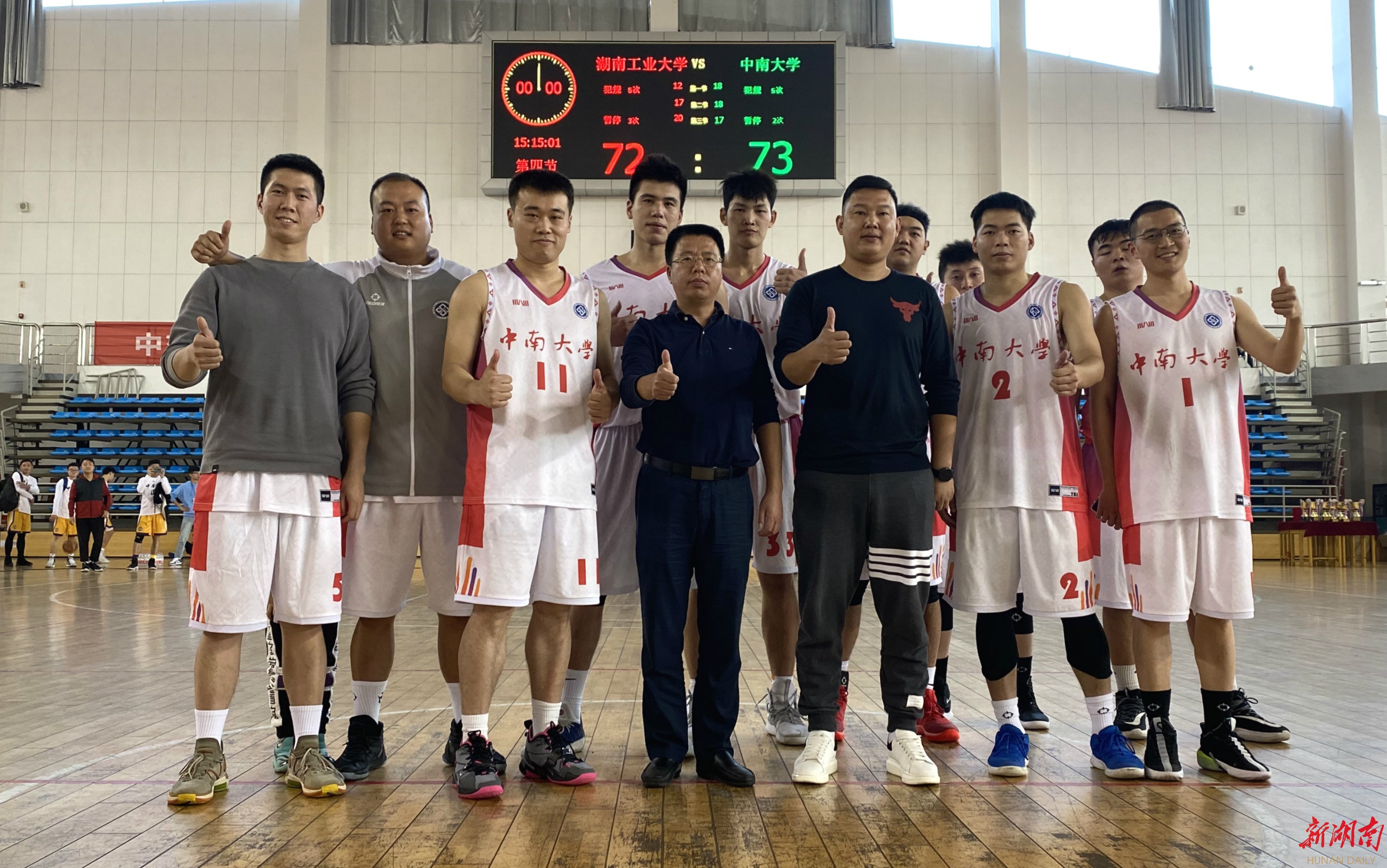 随着湖南工业大学最后一投不进,终场哨响,比分最终定格在73:72,中南大学首次夺得湖南省研究生男子篮球联赛的冠军。