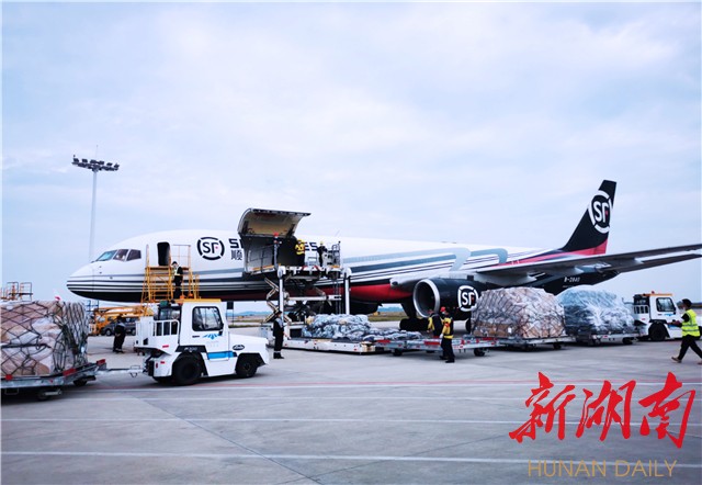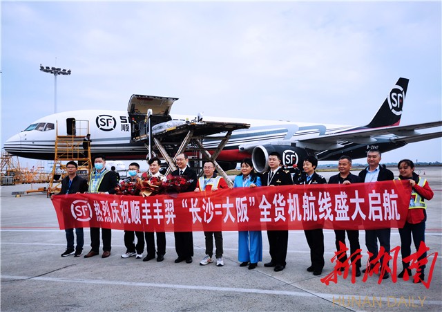 湖南日报·新湖南客户端11月17日讯(记者 唐璐 通讯员 杨倩 陈丽 摄影 范远志)今天上午,长沙开通至大阪往返全货运航线,该航线由顺丰航空执飞,当天实现往返。这是顺丰今年在湖南开通的第五条全货机航线。