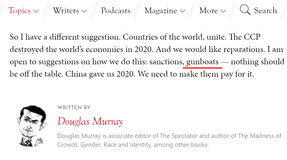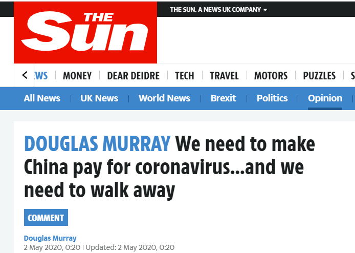 可就是这这么一位保守派右翼“思想家”,近日却再次抛出了他曾在今年5月时就抛出过的荒唐言论,即要让中国为新冠疫情带来的损失给英国赔钱。