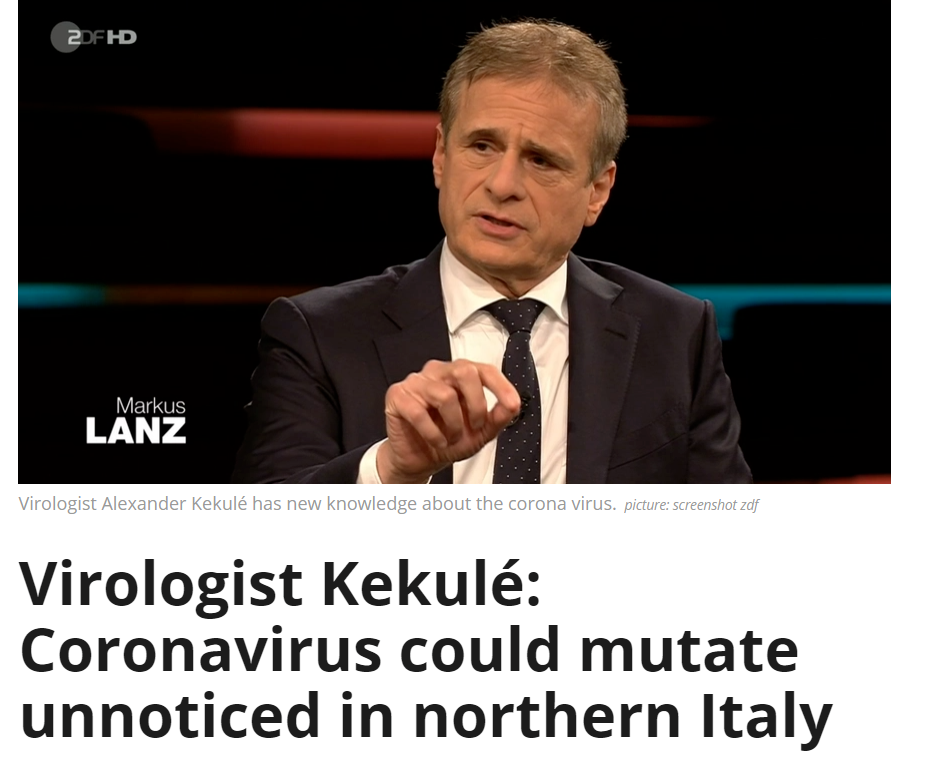 图为德国病毒学专家Alexander Kekule不久前表示,虽然新冠疫情先出现在武汉,但全球疫情大流行的起点却可能在意大利北部