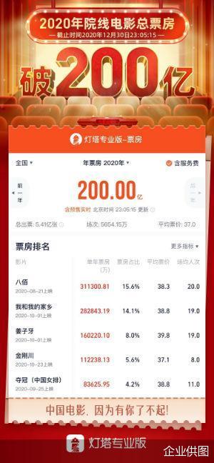 不过,从另一个角度来看,中国电影行业是顽强不屈的,在好莱坞电影缺失的背景下,灯塔数据显示,截至12月30日,全年票房近200亿元,国产片支撑起行业的运转与希望。