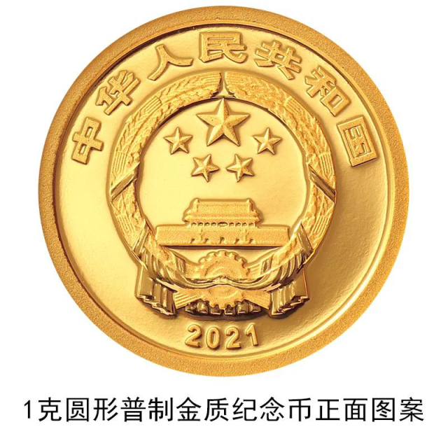 中国人民银行定于2020年12月31日发行2021年贺岁金银纪念币一套。该套纪念币共2枚,其中金质纪念币1枚,银质纪念币1枚,均为中华人民共和国法定货币。 纪念币图案正面图案 该套纪念币正面图案均为中华人民共和国国徽,并刊国名、年号。
