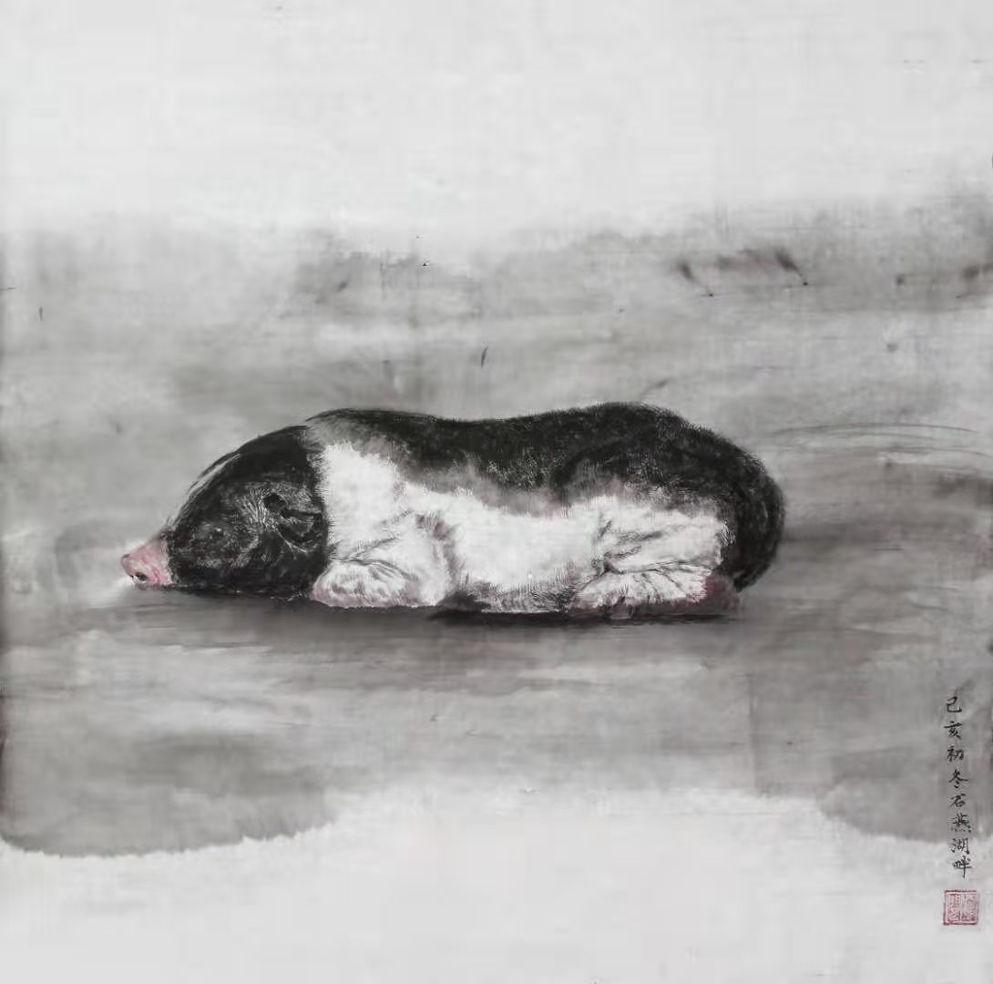 潜龙在湘,飞龙在天,龙这个十二生肖中唯一由民间虚构创造出来的灵魂在老罗画来,那是五色交辉,斑斓灵动,纵人目迷,既有中国龙的腾越,又体现了墨分五色在动物画中的的拟人功能,老罗把这拟人性传播在他创造的水墨十二生肖中。