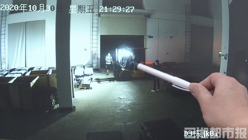 此时,仓库监控被成功恢复。监控清晰地记录下了案发的过程。
