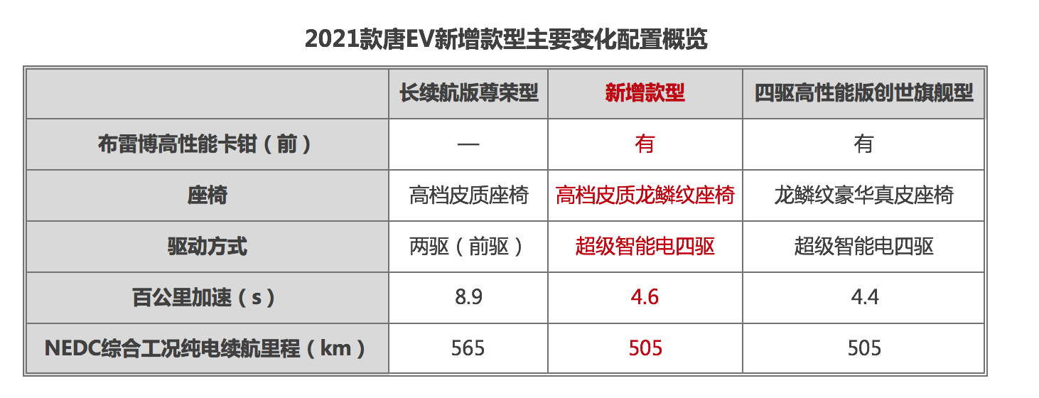 据了解,2021款唐EV自上市以来备受关注,为了满足客户多样化需求,2021款唐EV将在原长续航版尊荣型的基础上升级,加推新款型。