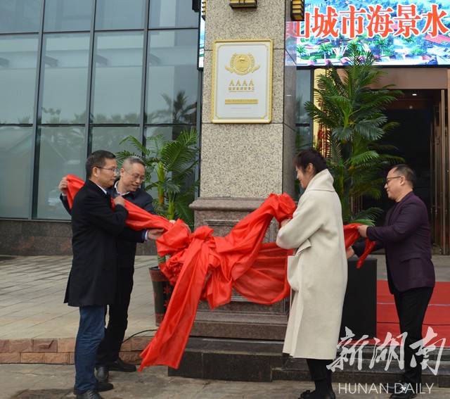 湖南日报·新湖南客户端12月23日讯(记者 曾佰龙 通讯员 胡宁)12月23日上午,昭山城市海景水上乐园正式授牌国家4A级旅游景区,昭山又添一枚国字号招牌。昭山示范区党工委副书记、管委会主任李宏钰,湘潭市文化旅游广电体育局副局长喻卫中,昭山示范区党工委委员、纪工委书记杨剑,昭山城市海景水上乐园有限公司董事长康宁共同为昭山城市海景水上乐园国家4A级景区揭牌。