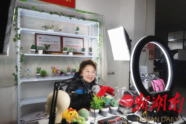 为不辜负员工们的信任,肖跃莲主动出击,寻找客户,寻找网络营销等商机,通过线上直播卖货拓展销售渠道,积极开展产业转型。在蒸湘区政府的资助下,腾跃工艺厂开展了系列线上直播、美工设计、文案制作、网络营销等培训,带领大家一起通过线上平台开拓新的市场。