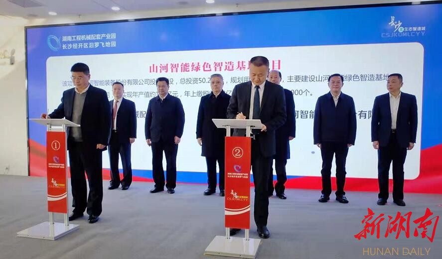 当天集中签约入园的5个项目总投资81.6亿元,其中,山河智能绿色智造基地项目总投资50.2亿元,达产后预计年产值在100亿元以上;伟邦液压智慧园建设项目总投资10.1亿元、隧装整机制造项目总投资5.6亿元、力达液压机械制造项目总投资5.2亿元、年产3万台重型驾驶室生产项目总投资10.5亿元。