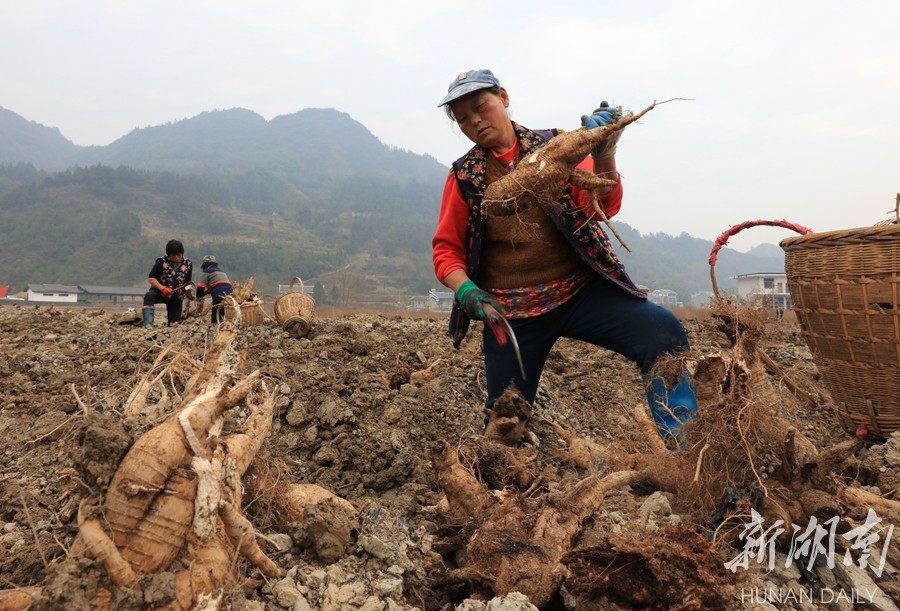 12月25日,张家界市武陵源区协合乡菜葛种植基地,葛农在采挖菜葛。冬至过后,该区菜葛迎来收获季。近年,当地通过发展规模化菜葛种植及深加工产业,带动农民增收致富。吴勇兵 摄