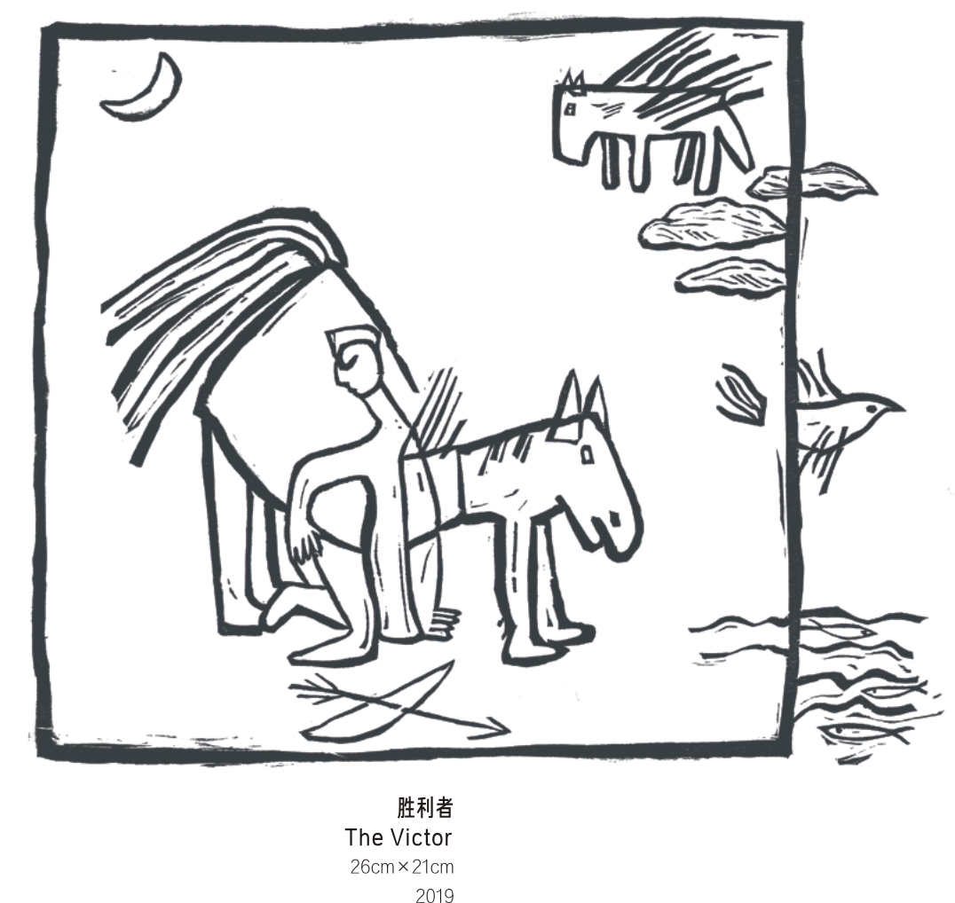 邓党雄热情执着木刻版画人文性特征,追求黑白木刻版画的金石味与“写”的韵味,张扬情绪情感特征。运用粗细长短、富有韵律的线条体现画面的走势与情感,融合大众审美图像,突出版画本体语言,突破单一版画语言,创造了丰富生活情趣的版画作品,形成了个人独特的创作型黑白木刻版画风格。