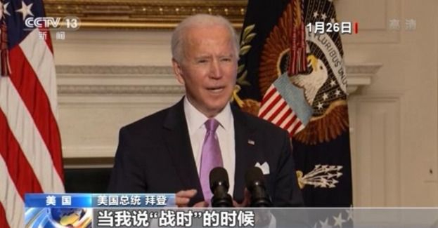 美国总统 拜登:这是“战时努力”。当我说“战时”的时候,人们可能会问 “战时”?是啊,已经有40万美国人死亡了。