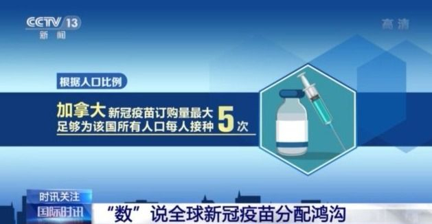 由乐施会等多个国际组织联合成立的“人民疫苗联盟”数据显示,根据人口比例,加拿大的新冠疫苗订购量最大,足够为该国所有人口每人接种5次。