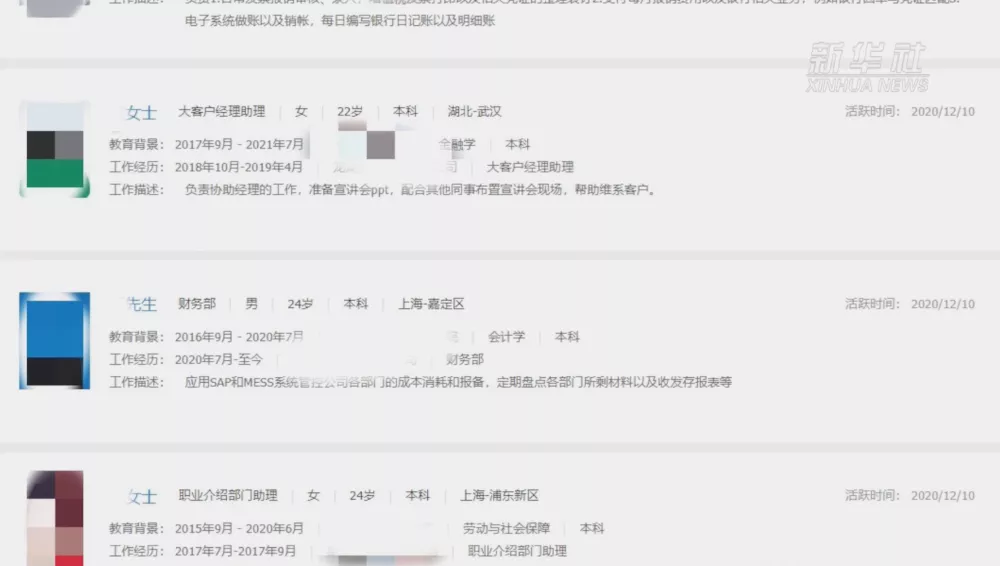 2021届毕业生求职工作陆续展开。据新华社“全民拍”线索,不少毕业生在招聘网站上投递求职简历后个人信息遭泄露,频频接到骚扰电话。