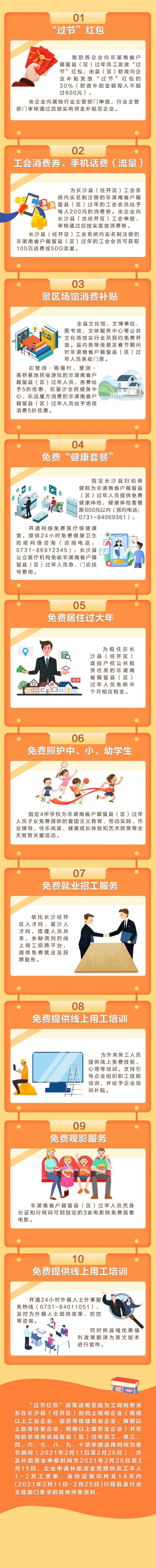 据悉,此次活动将从2月1日持续至3月3日,针对非湘籍园区企业员工开展以“一封节日慰问信、一个节日红包、一张旅游年卡、一份免费流量、一份劳动保障、一份健康关怀”等“六个一”为主要内容的各类“送温暖 过佳节”系列活动。