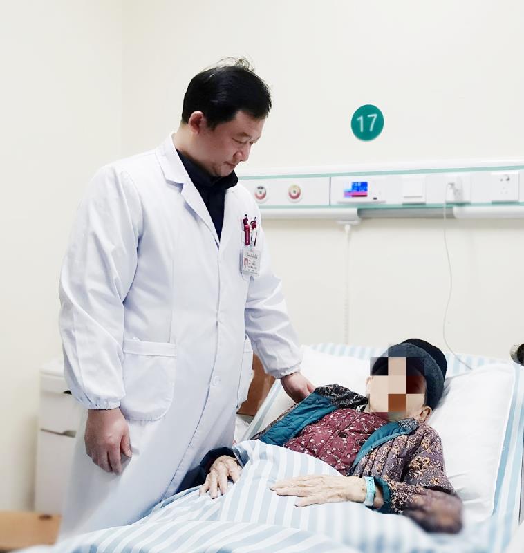 (普外科副主任李卷为肖娭毑术后查房。通讯员摄)