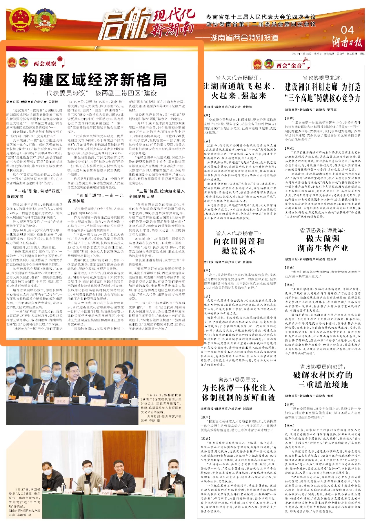 “建议发挥‘一核两副’协调联动,推动湖南区域经济协调高质量发展”“岳阳和衡阳要抢抓省域副中心城市建设带来的巨大机遇”“‘一核两副三带四区’符合湖南未来区域经济发展的趋势”……