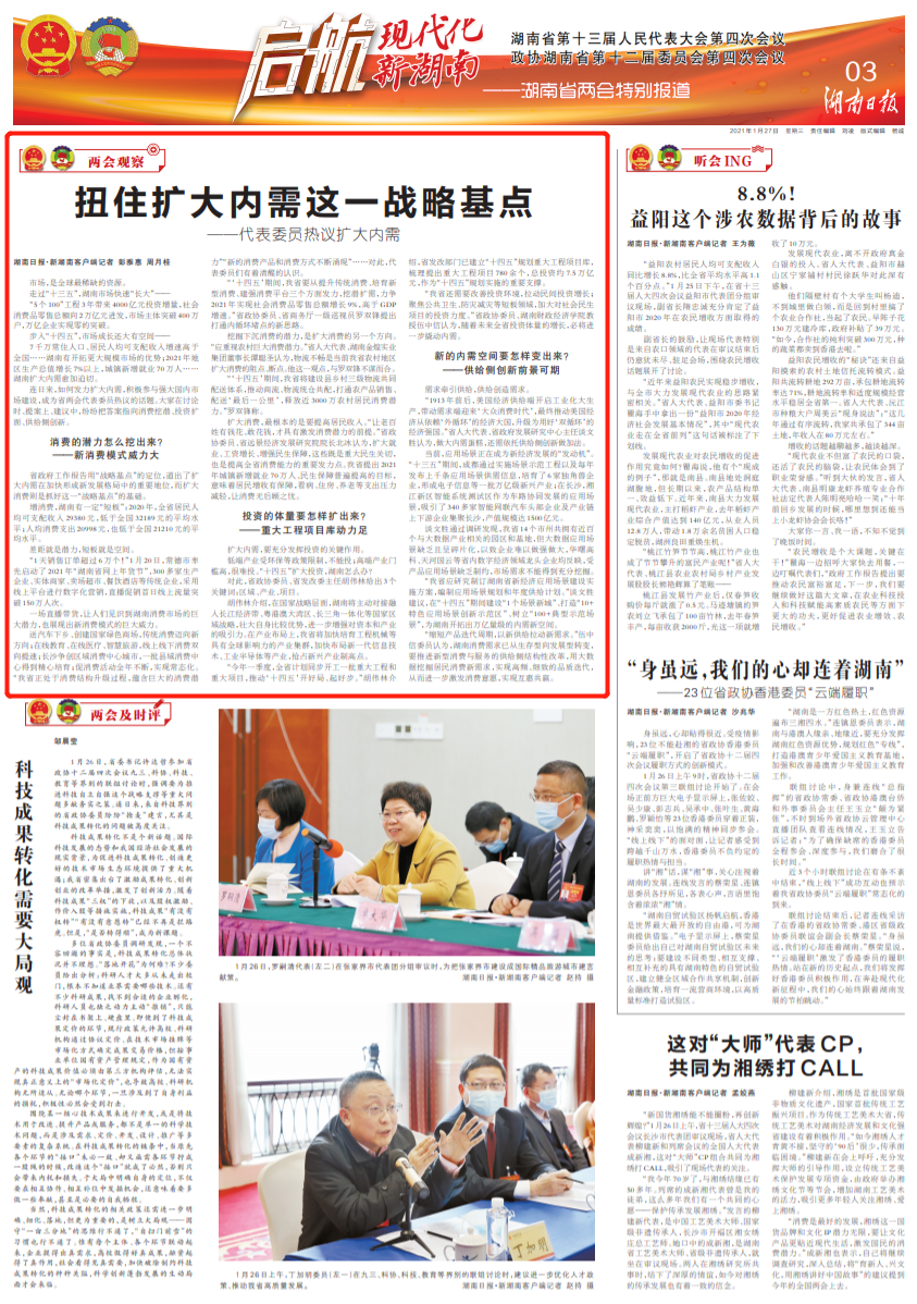 7千万常住人口、居民人均可支配收入增速高于全国……湖南有开拓更大规模市场的优势;2021年地区生产总值增长7%以上,城镇新增就业70万人……湖南扩大内需愈加迫切。