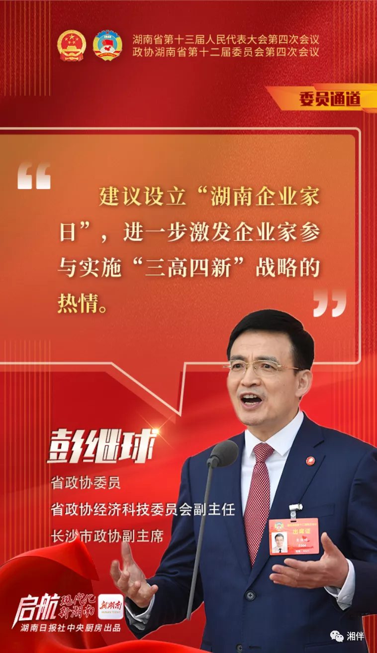 另外,彭继球还建议设立“湖南企业家日”,进一步激发企业家参与实施“三高四新”战略的热情。