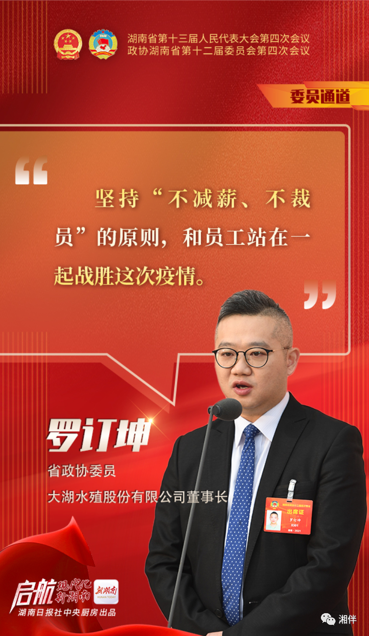 “一手抓疫情防控,一手抓生产保供,全力保障物资供应,稳步恢复生产。2020年实现年产值30亿元,同比增长10%,相关产业链配套带动近30万人实现稳定就业。”省政协委员、大湖水殖股份有限公司董事长罗订坤在委员通道上细说企业复工复产后如何克服疫情影响,寻找发展新机遇。