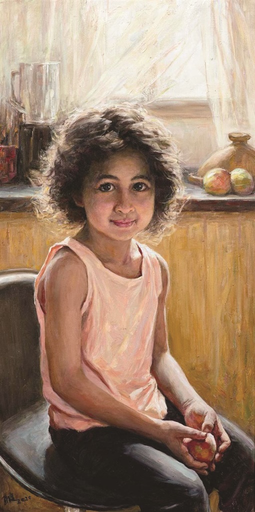 △李自健作品《逆光下的莱蒂法》99.5×52cm 油画 2020年。