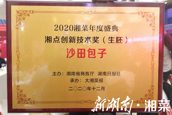 新湖南·大湘菜报(记者 曹婕妤)在刚刚结束的2020湘菜年度盛典上,才喜获“湖南老字号”之称的沙田包子又作为唯一一家湘点制作单位,登上这个充满欢乐与荣耀的舞台。在共同回顾本年度湘菜产业发展过程中振奋人心的事件、拼搏闪耀的人物与企业时,沙田包子以独创的生胚技术荣膺“湘点创新技术奖”,一展湘点的新风貌。