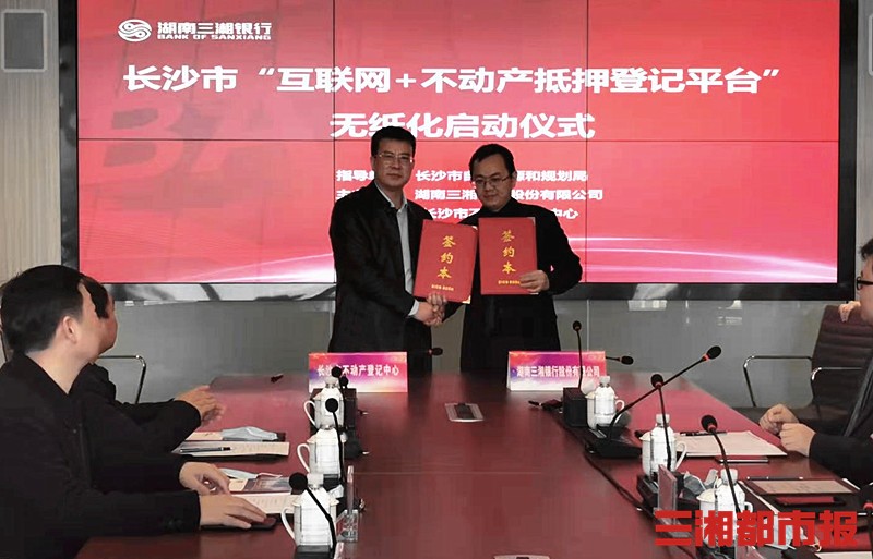 三湘都市报·新湖南客户端1月28日讯(记者 卜岚 通讯员 谭柳霞)今日,长沙市不动产登记中心与湖南三湘银行“互联网+不动产抵押登记平台”无纸化启用仪式举行。据悉,即日起该升级后的平台将在湖南三湘银行股份有限公司试点,启用该模式后,在线抵押登记不再收取纸质材料,真正实现全流程无纸化办理。