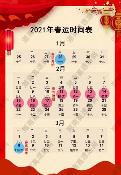 三湘都市报·新湖南客户端1月26日讯(记者 和婷婷 通讯员 江钻)1月28日将开启为期40天的春运。在疫情防控常态化形势下,今年春运有什么变化?今天,湖南省高速公路路网运行监测指挥中心发布2021年春运湖南高速公路出行攻略,预计今年春运期间,全省高速公路路网车流出入口总量将达1.08亿辆次(较2019年增长5.04%,较2020年增长64.02%),日均流量269.46万辆次,是日常流量的1.5倍。预计峰值日出现在2月17日(正月初六),车流量将是日常流量的2.5倍。