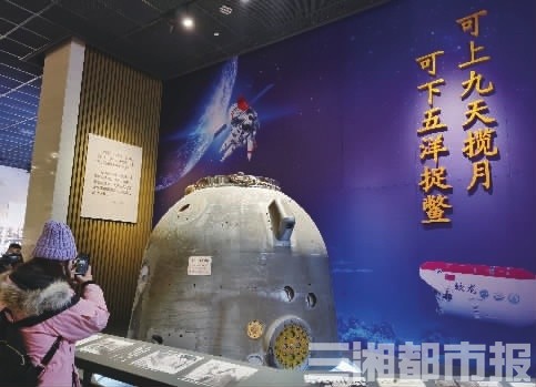 (1月18日,韶山毛泽东同志纪念馆,神舟十号载人飞船返回舱在此展出。)