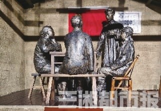 这座群雕描述的就是毛泽东阁楼建特支的故事。1925年2月,毛泽东回到韶山,创办了农民夜校,开展农民运动,也将社会主义带到了家乡。