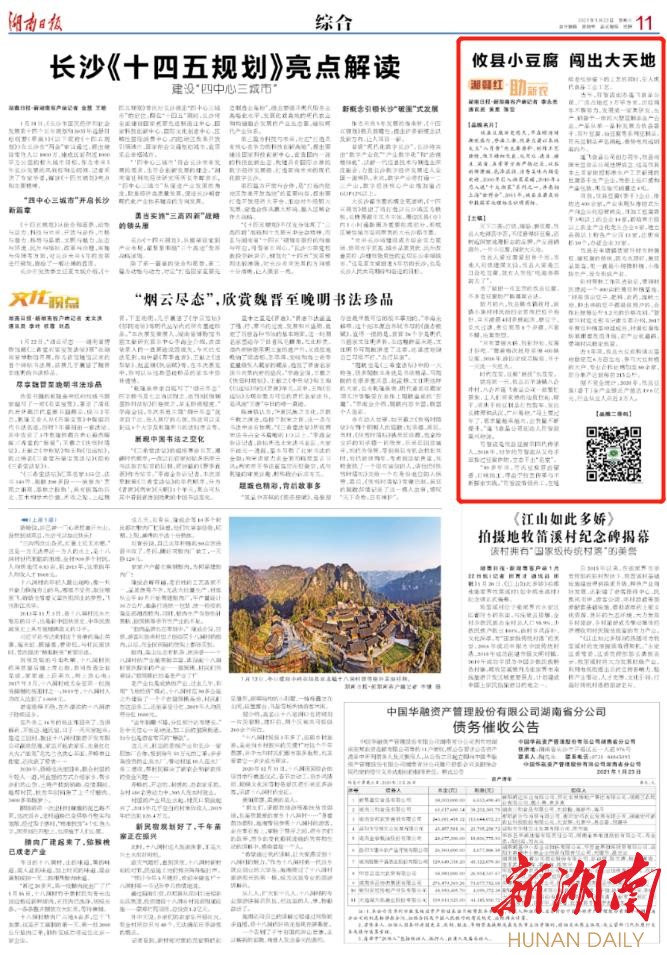 就在同一天,攸县石羊塘镇八合冲村,八合冲蓬飞食品公司一派繁忙景象,工人们将煮熟的油皮拉起、晾干,将烘干的豆制品打包装车,发往长株潭和武汉、广州等地。“马上要过年了,需求量越来越大,出货量不断提升。”蓬飞食品公司创始人符智波高兴地说。