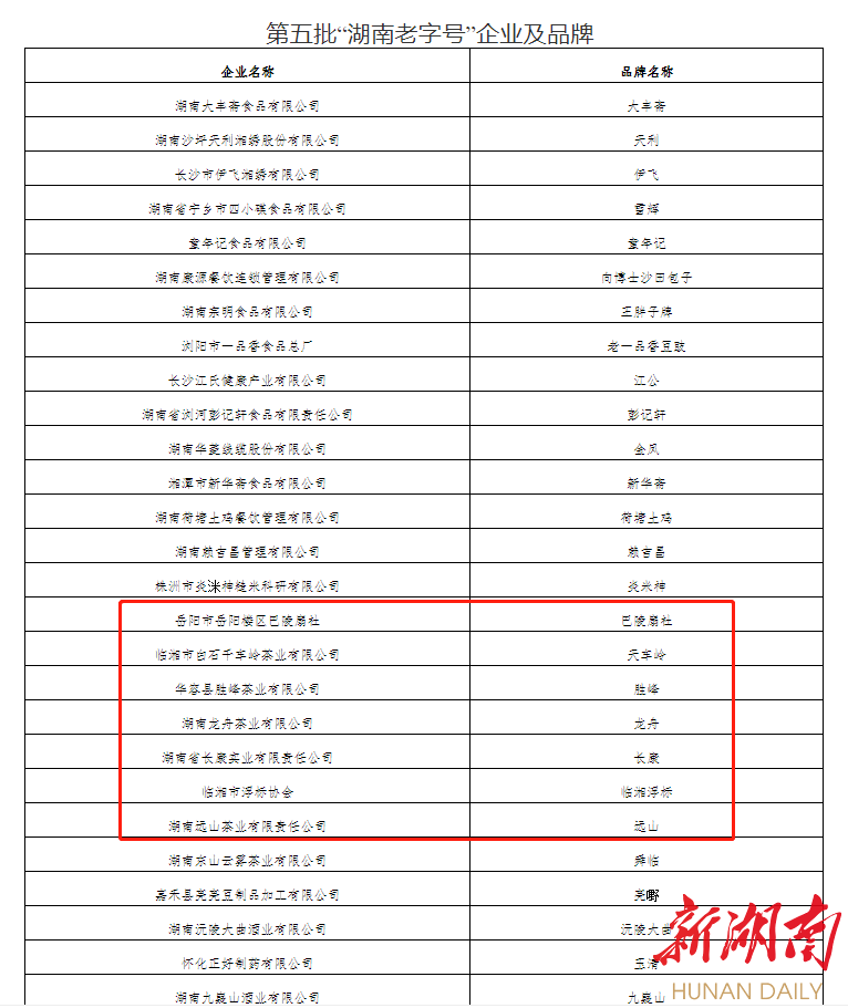湖南日报·新湖南客户端1月4日讯(记者 张璇)近日,湖南省商务厅发布关于认定第五批“湖南老字号”的通知,经企业申报、市州商务主管部门初审、省商务厅组织专家评审,并经社会公示,认定68个品牌为第五批“湖南老字号”。其中,岳阳有7家企业及品牌在列。