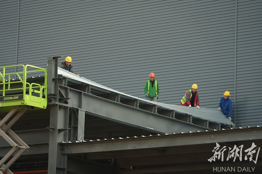 1月1日,长沙高新区中联智慧产业城土方机械园区项目现场,中建五局三公司的建设者奋战在钢构厂房顶棚安装施工现场。元旦假期,该项目工地有400余名建设者放弃休假,全力推进项目建设。湖南日报记者 徐行 通讯员 钟锐 摄影报道