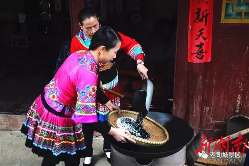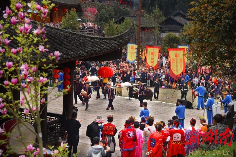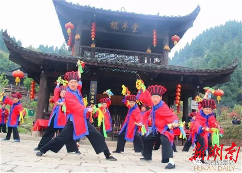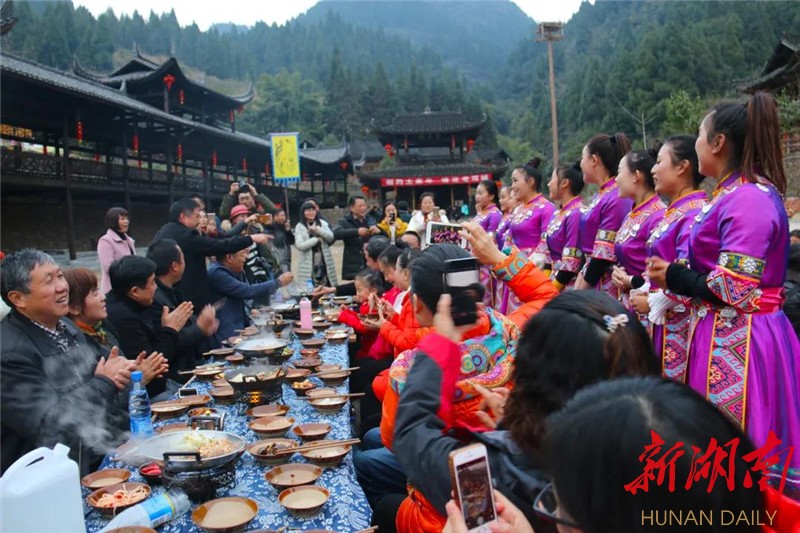 每到腊月廿九,土家族群众就会齐聚一堂,杀年猪、打糍粑、推豆腐、炒炒米、送春联,吃长龙宴,举办民族风情浓郁的土家春节联欢会。还有神秘的非遗项目展演,等您来。