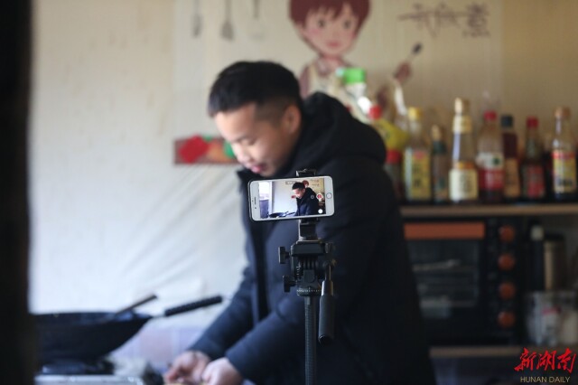 “这里是会同县地灵乡桥冲村......”桥冲村后一片茂密的竹林,“网红”吴德应搭好手机支架,固定好机位,竹林挖冬笋的直播开始了。