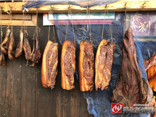 腊肉、干鱼开始腌制、晾挂、熏制,远远的都能闻到炊烟熏制的肉香。屋内火坑上方悬挂的那一块块红白分明的腊肉,还泛着亮晶晶的油珠。