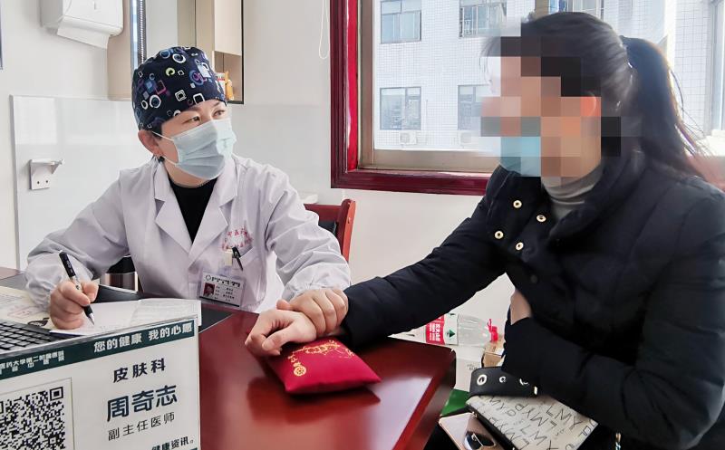 (图为皮肤科副主任医师周奇志在接诊患者。通讯员摄)