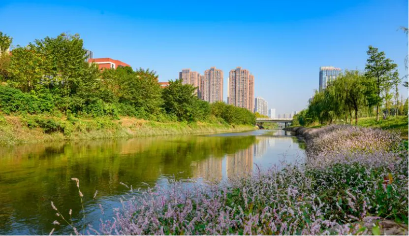 治理后的圭塘河天蓝水净