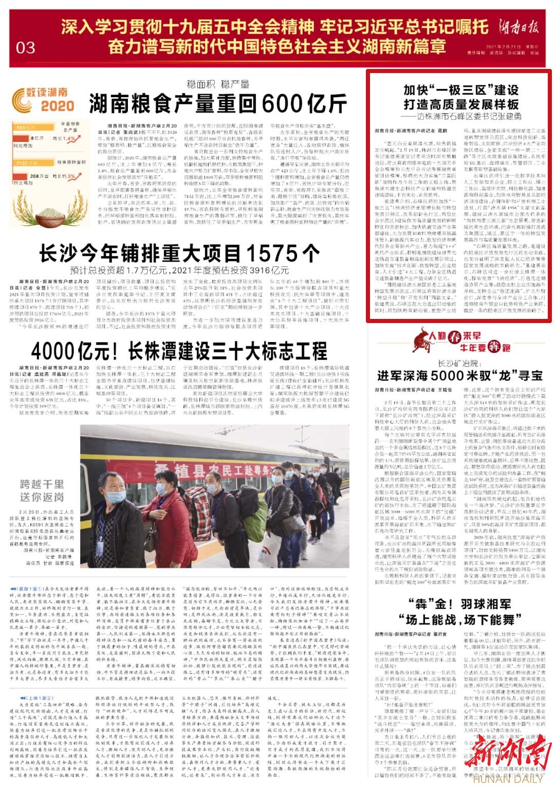 “蓝天白云重现清水塘,绿色新城正在崛起。”2月19日,株洲市石峰区委书记张建勇接受记者采访时深有感触地说,将认真贯彻落实党的十九届五中全会精神和习近平总书记考察湖南重要讲话精神,坚持把大力实施“三高四新”战略作为今后工作的主题主线,聚焦清水塘生态科技产业新城和轨道交通城建设,干在实处、走在前列。
