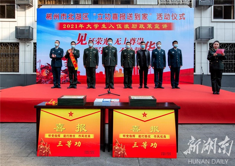 据统计,2020年,北湖区收到立功受奖喜报38份,目前立功受奖官兵的喜报已全部送达。同时,北湖区人武部还将军地领导送喜报拍成了视频资料,上传到网站宣扬立功官兵先进事迹,激励更多有志青年参军报国。