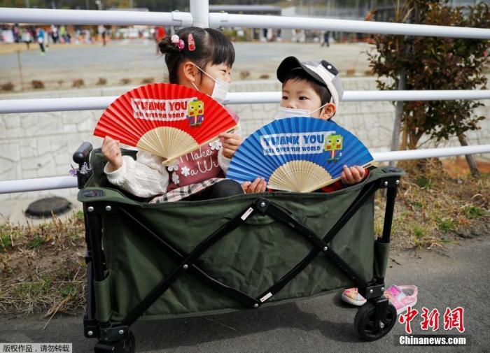 日本小朋友为奥运圣火传递加油助威