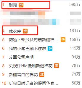 继H&M集团涉疆言论引发众怒之后,今晨25日,优衣库和耐克也登上微博热搜。