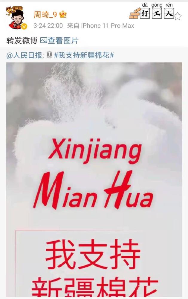 CBA球星周琦也成为CBA第一人公开宣布脱掉Nike的第一人。周琦昨夜发微博,表示将支持新疆棉花。