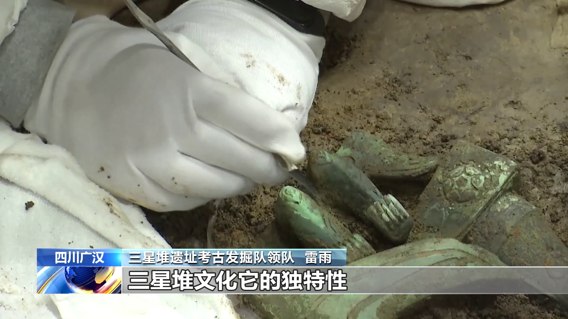 三星堆遗址考古发掘队领队 雷雨:一个个坑就这样被陆续发现了。它的编号是发现前后顺序的一个流水号,3、4、5、6、7号坑,最后确定下来8号坑是最大的坑。这几个坑器物群的出现,对三星堆遗址还有古蜀文明,甚至可以上升到中华文明,在那个阶段到底是什么样的状态?三星堆文化它的独特性到底独特到什么程度?跟中原的关系又融合到什么程度?还有它跟域外文明的关系到底有什么联系?这些方面我想应该有一个比较大的突破。