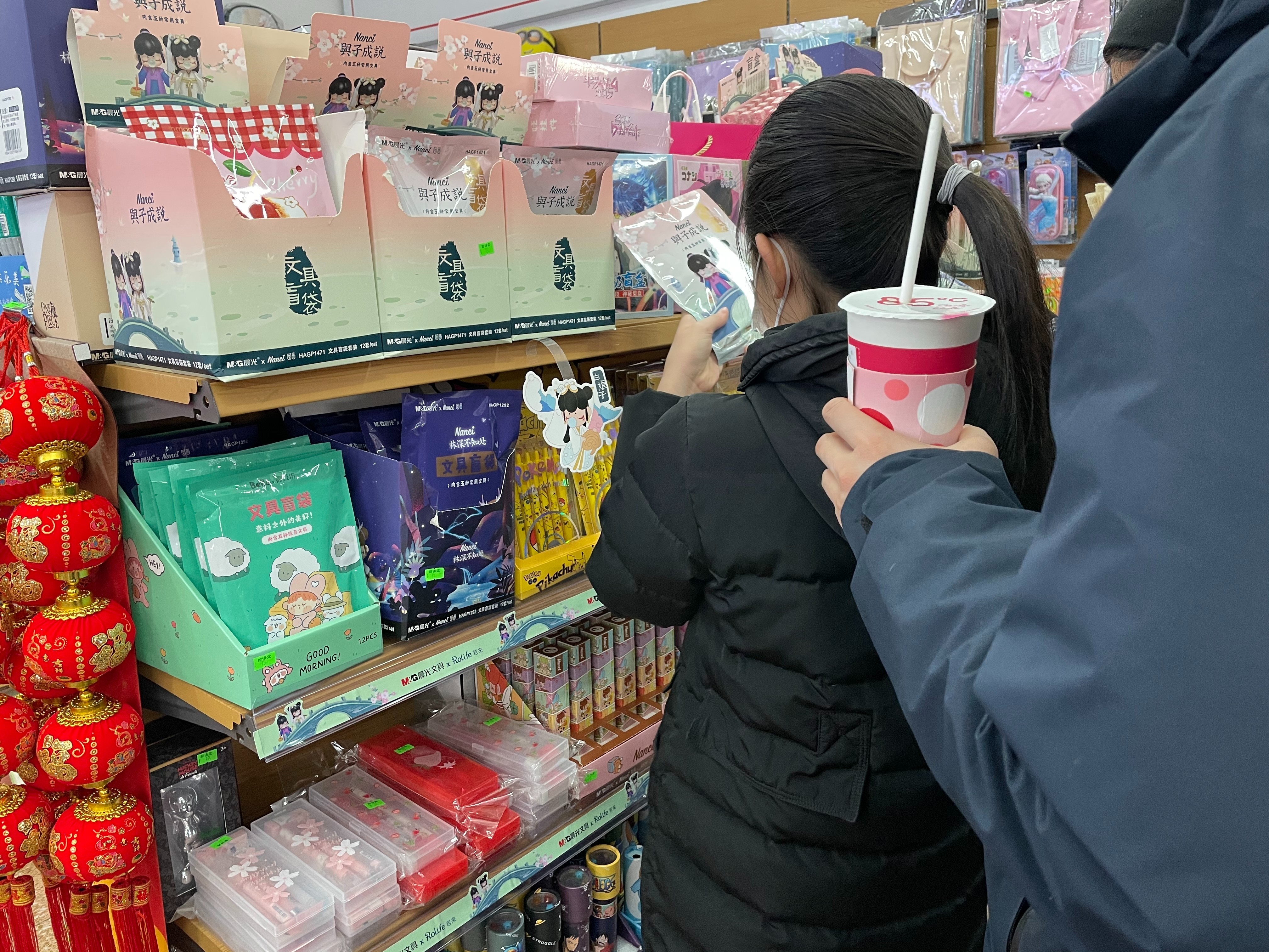 除了文具店,一些商场的文化用品店也有售文具盲盒。在西直门一家商场的礼品店内,3名女中学生正在盲盒区边挑选边讨论,出于对包装的喜爱和好奇,每人买了2支中性笔盲盒和一个盲袋。“包装很吸引我,就想知道里面有哪些不一样的东西。”其中一名女生告诉记者。记者询问拆出来的文具用得完吗?她摇摇头说,用不完的就送给同学,“过生日我们也喜欢互送盲盒。”