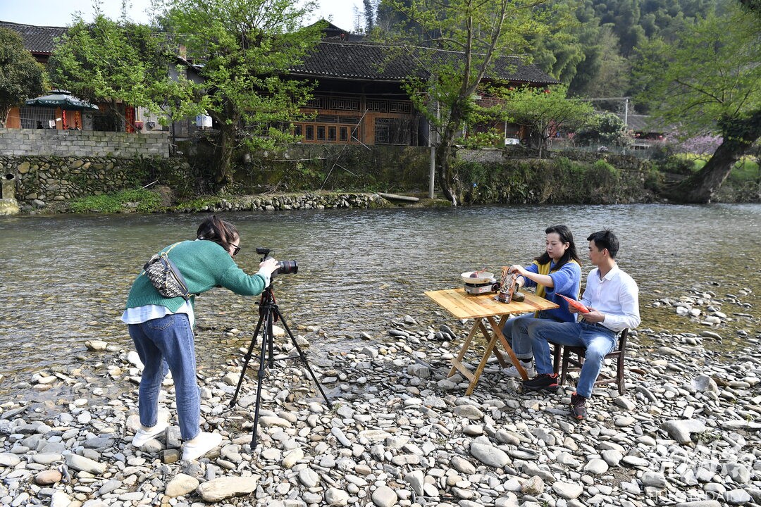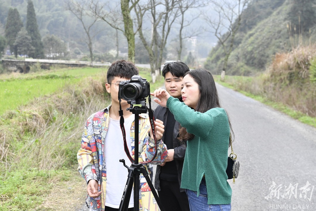 (3月18日,城步苗族自治县五团镇金童山村,欧江曲正指导拍摄团队。)